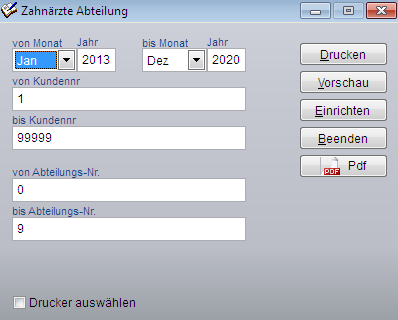 Dialogfeld Statistiken Zahnärzte