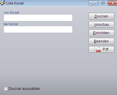 Die Auswahl erfolgt nach Kürzel. Geben Sie den gewünschten Start- und Endwert ein.